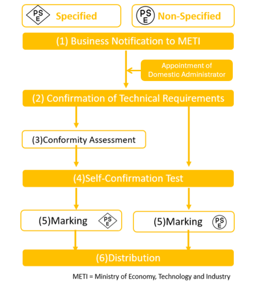 As a result of the amendment to the Electrical Appliance and Material Safety Law effective December 25, 2025, non-resident importers are now allowed to submit notifications under the PSE Law by appointing a Domestic Administrator in Japan. The PSE mark is not a certification, but rather evidence that the notifier has confirmed and guarantees the safety of the product in accordance with the applicable technical standards. After submitting the required notification, the notifier is responsible for conducting safety confirmation based on the prescribed standards, maintaining records of such confirmation, and ensuring that the product is properly labeled. Required labeling includes the name of the notifying business operator, rated specifications, and the serial number of the product.